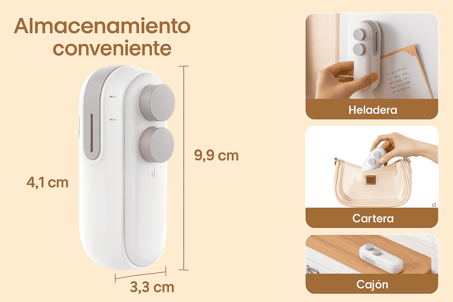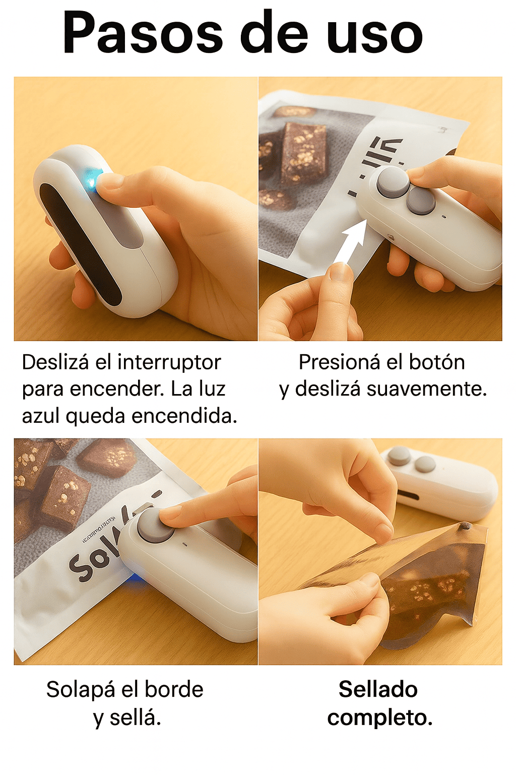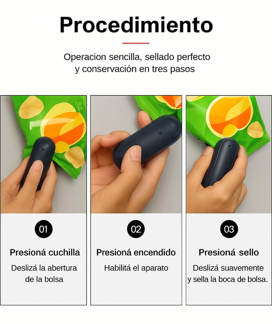 Sellado rápido: Simplemente presioná y deslizá para sellar bolsas al instante.